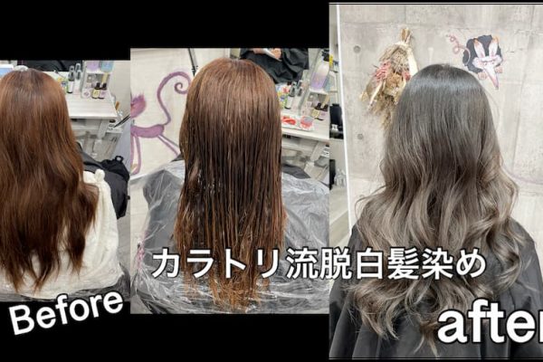 脱白髪染めで土台の赤みを減らして外国人風カラー