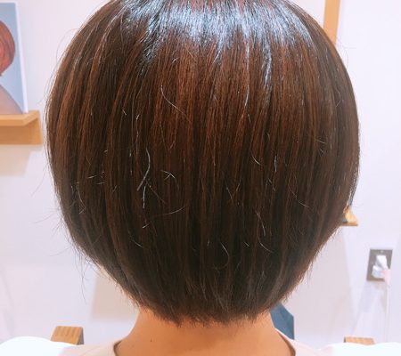 ブリーチ毛にティントバーのパーフェクトシアン単品で染めたボブスタイル