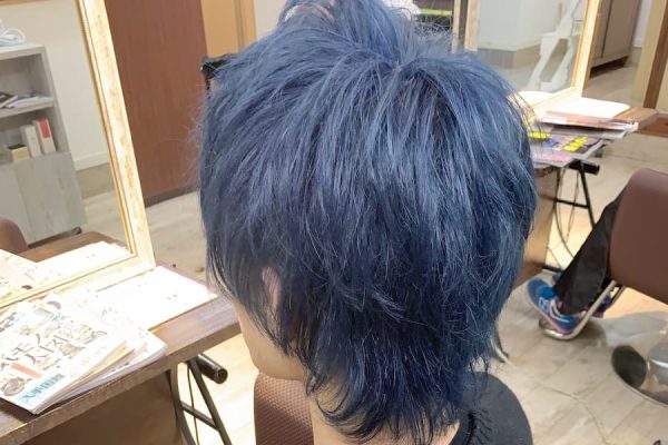ブリーチ毛にティントバーのインディゴブルー単品を入れたメンズスタイル