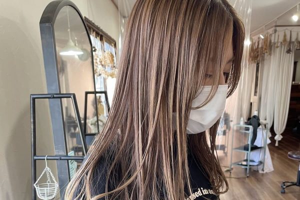 ブリーチ2回。スロウで作る暖色系ミルクティーカラー