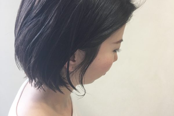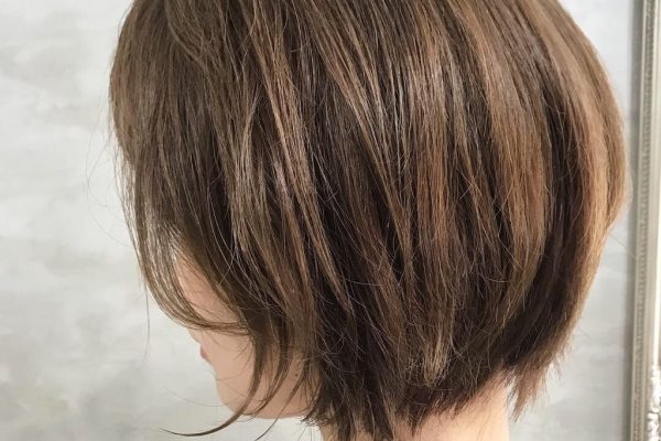 切りっぱなしボブにハイライトを入れて染めるスロウのベージュレシピ