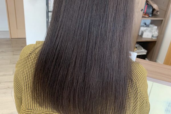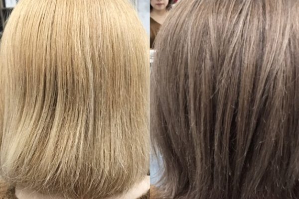 初カラー後でブリーチ毛からのダークカラーはスモークブラウンが綺麗!