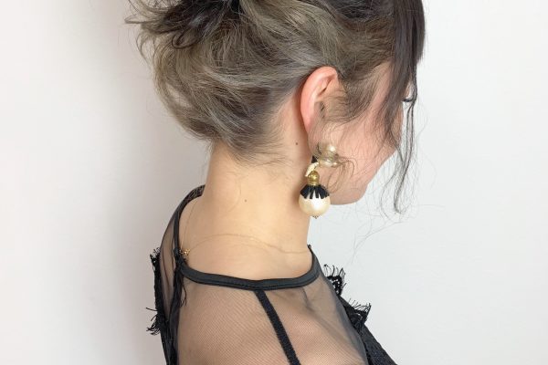 お団子アレンジをより映えて見せるダーク系とハイトーンのツートーンカラー