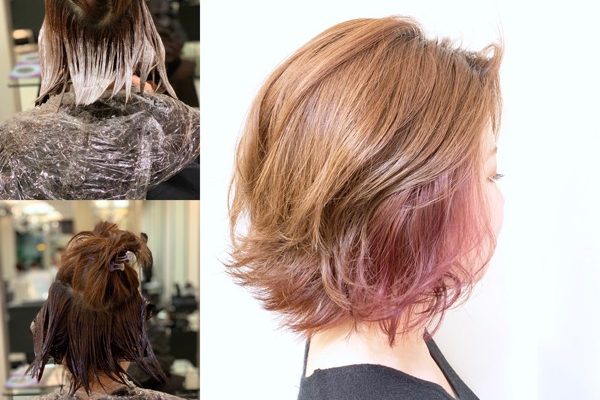 インナーカラーをブリーチ20%ですると??ダメージを抑えたポイントカラー。