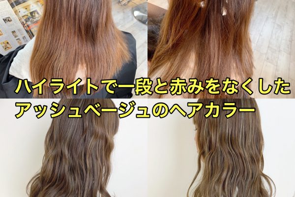 ハイライトで一段と赤みをなくしたアッシュベージュのヘアカラー