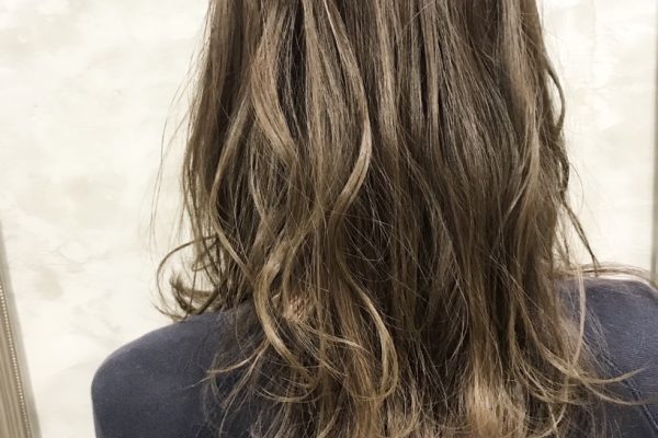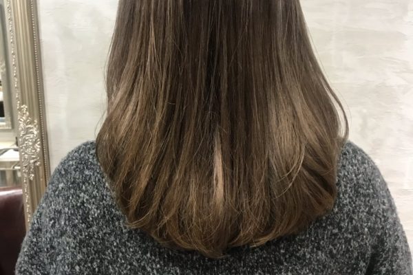 前回のブリーチを活かしたナチュラルグラデーションのオリーブグレージュ
