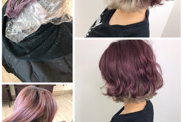 3回ブリーチベースにホワイトベージュとボルドーのツートーンカラー
