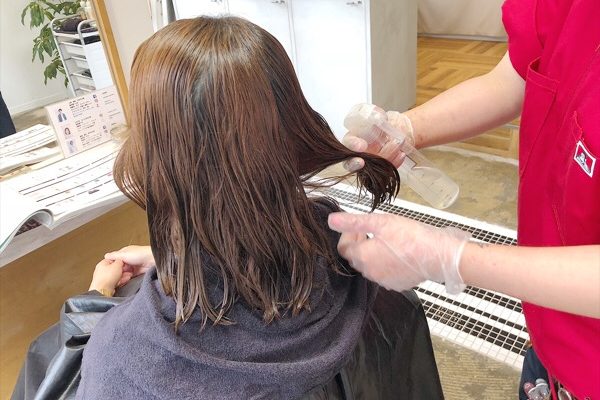 前回入れたハイライトを生かして透明感溢れるアッシュグレーにする