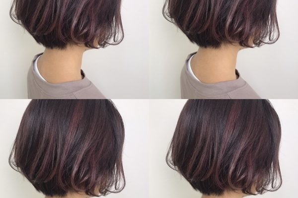 ボブにスライシングでコントラストをつけたピンクボルドーのヘアカラー