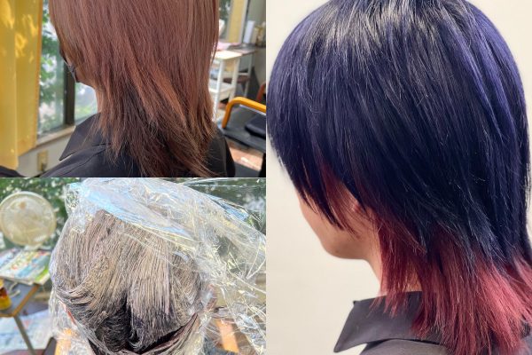 ブリーチ必須のブルーブラックとレッドの派手髪