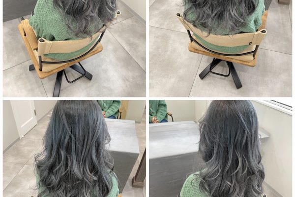 スロウで染めるグレーがかったバレイヤージュカラー