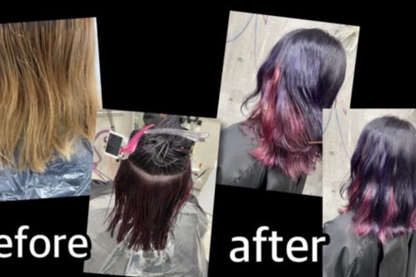 インナーカラーピンクとベースは濃厚ラベンダーがお洒落!