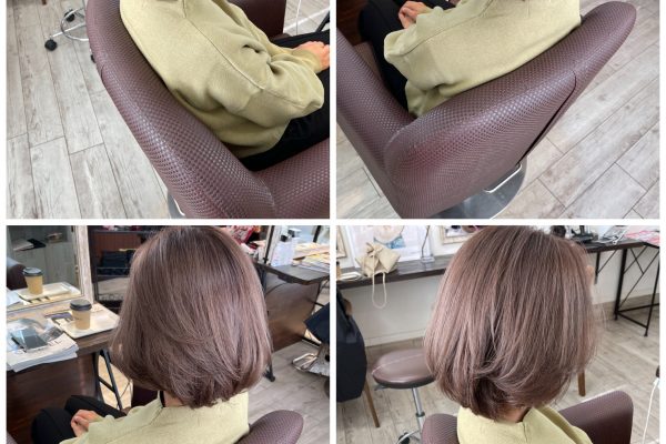 ピンクを足したベージュカラーのボブスタイルが綺麗