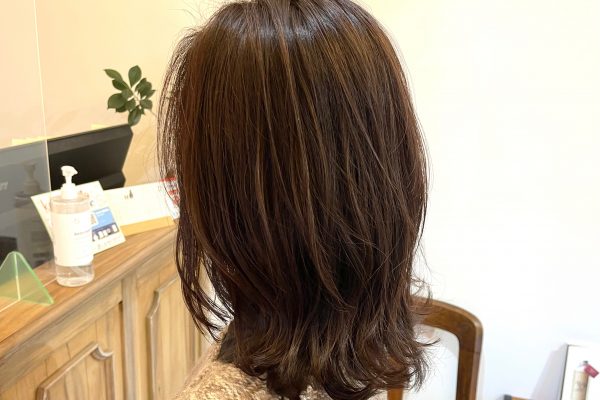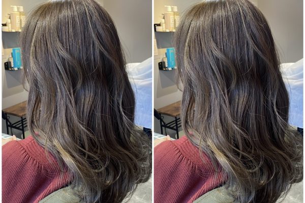 ハイライトを使った白髪ぼかしハイライトでミルクティーカラーに
