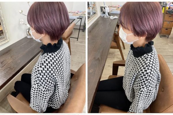 ブリーチ毛にティントバーで染めたパープルカラーのショートマッシュ