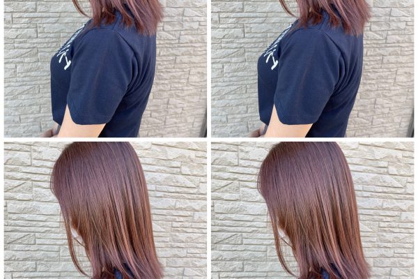ブリーチ毛にカッパーピンクで染めたヘアカラー