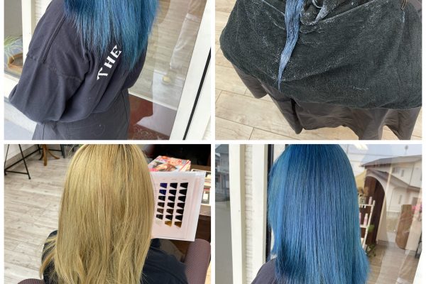 ブリーチ毛にウルトラマリンで染めたブルーカラー