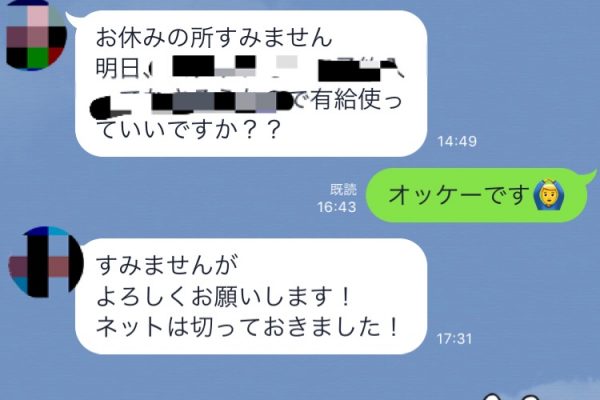 スタッフとの有給休暇取得のやりとり全部みせます。