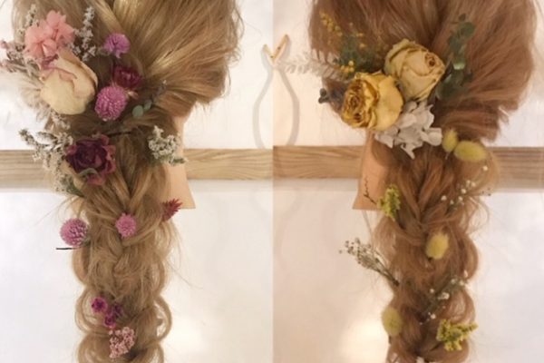 【ブライダルヘアーにドライフラワー】