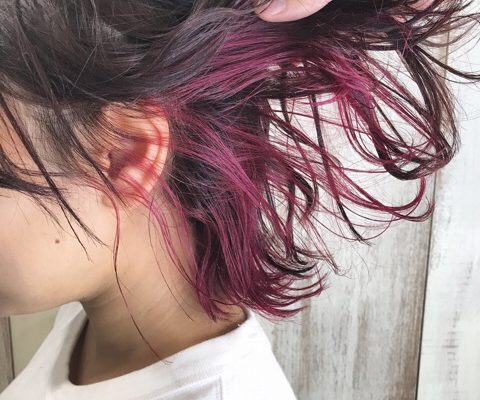 インナーカラーとウェーブの巻き方。