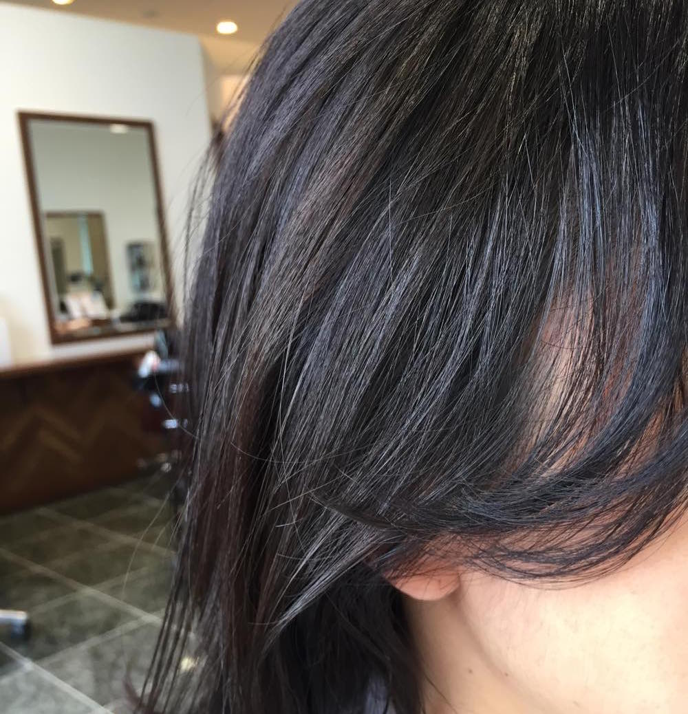 最初から明るめアッシュもいいけど、濃紺アッシュで毛先のダメージ、パサつきも気になりづらいという。
