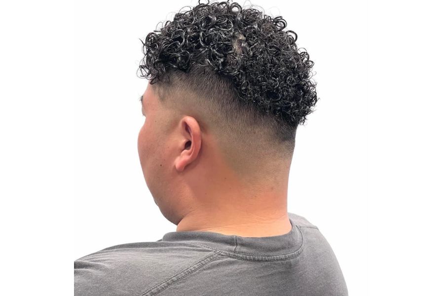 周りをフェードで刈り上げてトップの髪の毛をかなり強くパーマをかけていきます