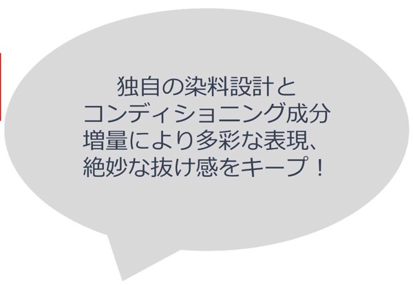 こちらのカラー剤には従来のカラー剤より、コンディショニング成分が沢山入っているそう。