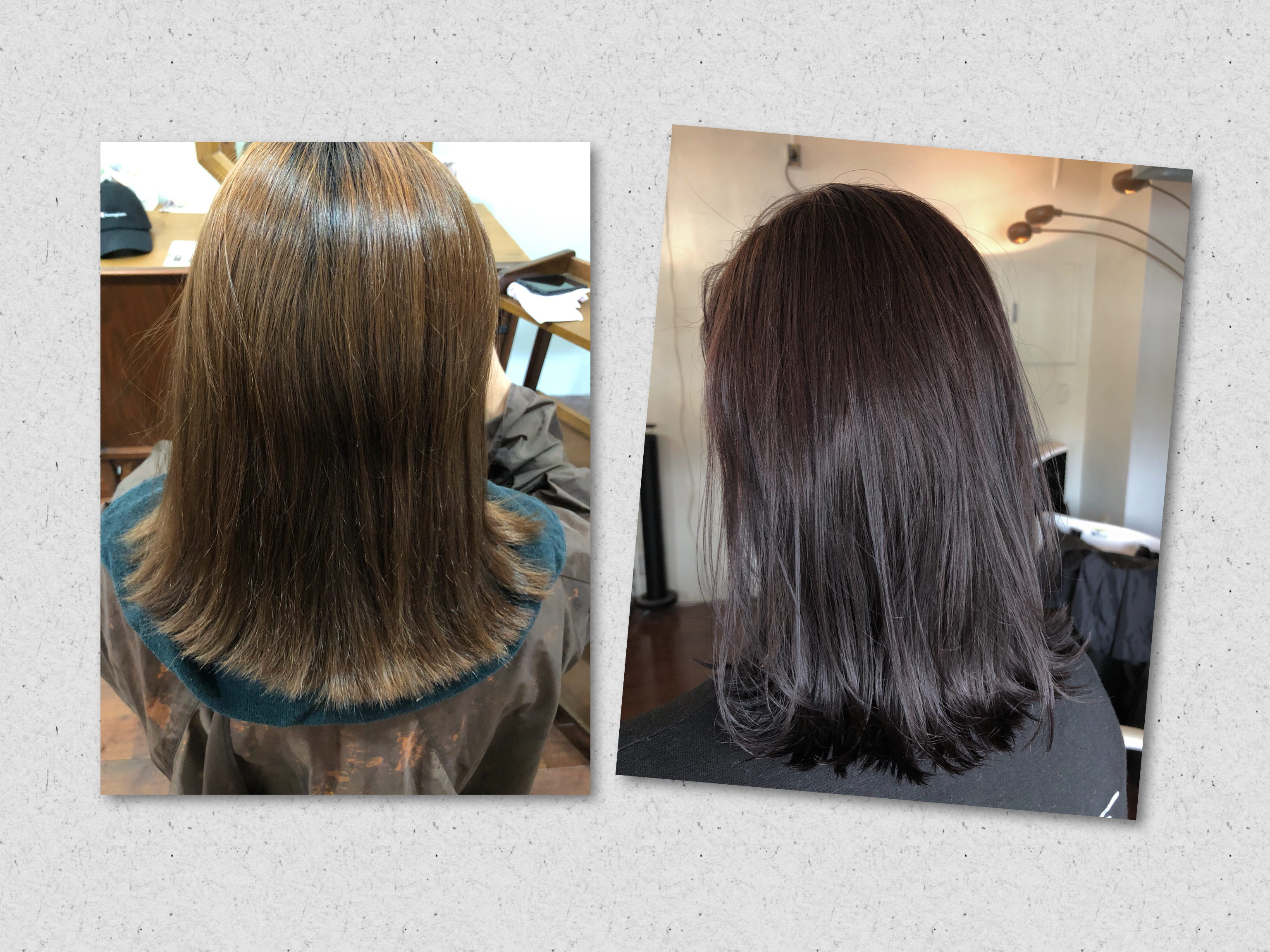 褪色して、黄色っぽくなりやすい髪質のお客様。