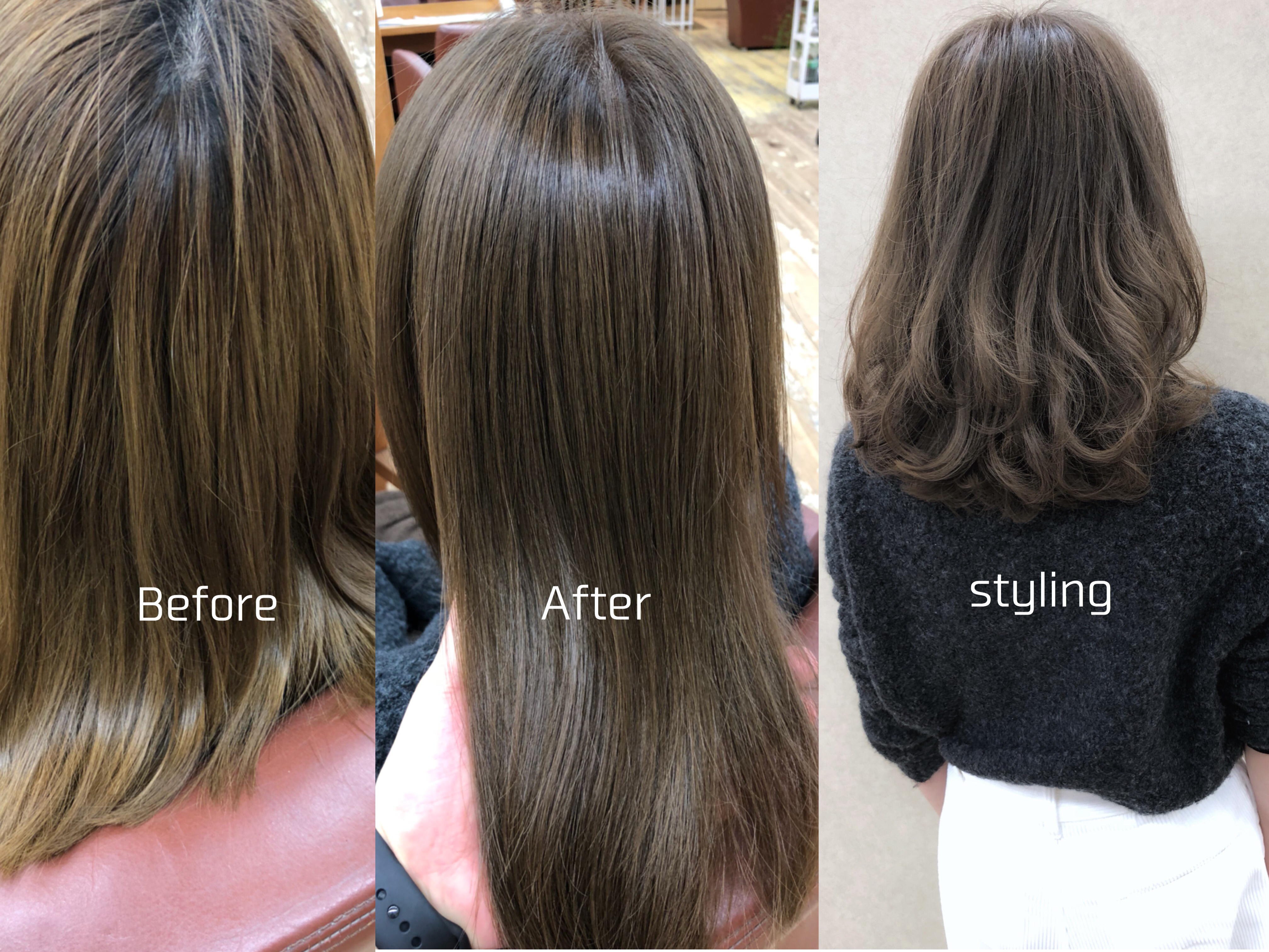 今回はこの状態の髪に、Be/10 : SMOKEを3:1でミックスしたもの塗布しました
