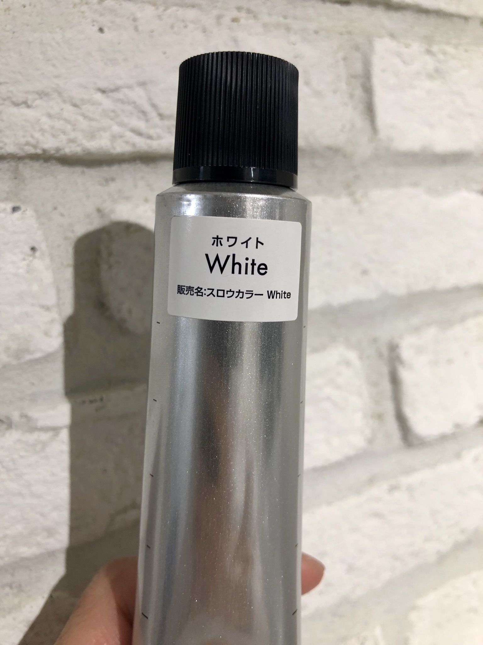 このホワイトと2剤を混ぜたものを縮毛矯正を施している部分に塗ってから普段通りのカラーを行います。