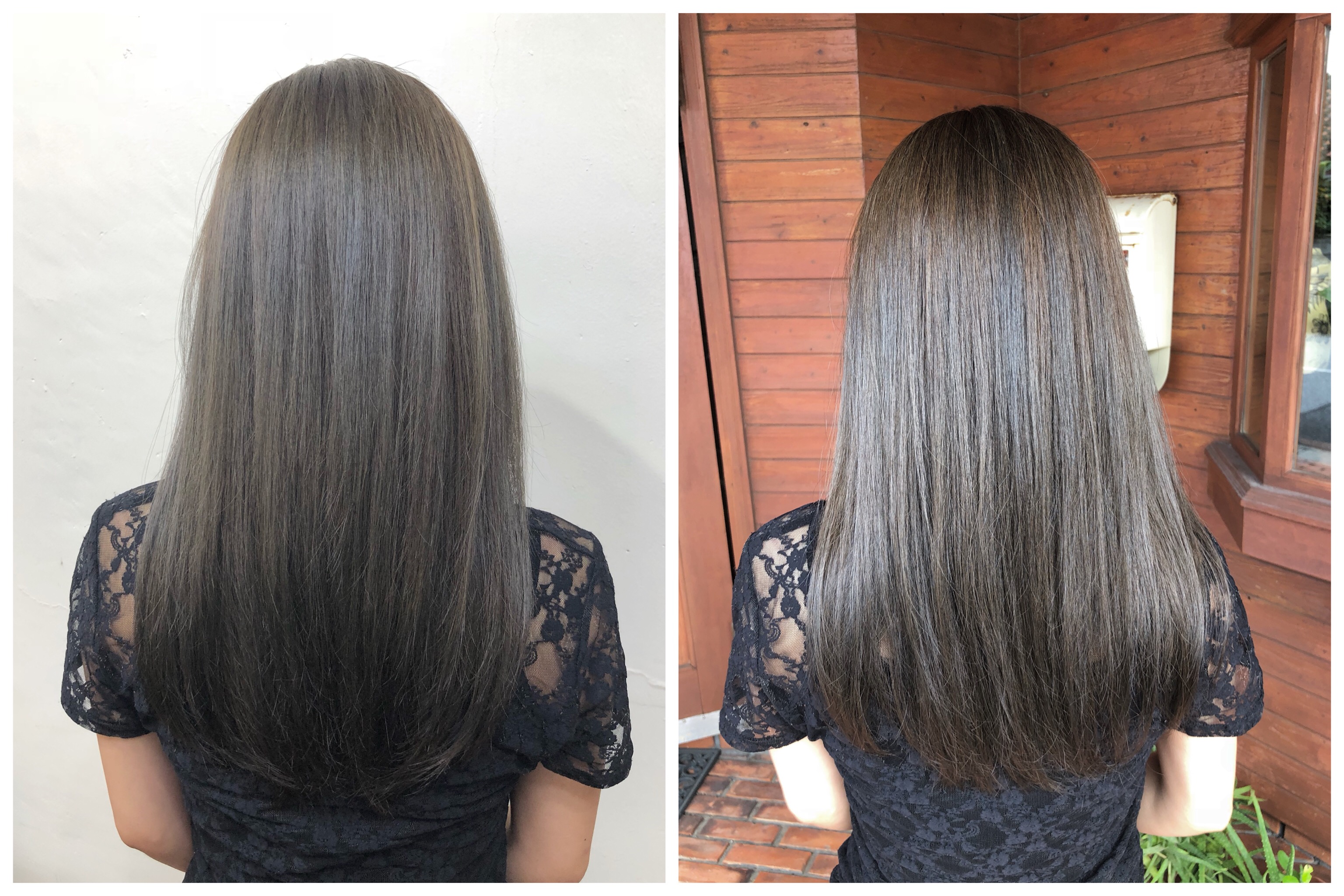 黒髪よりも、カラーして退色して明るくなった髪、それよりもブリーチした髪の方が明るさ、透明感のあるグレージュは作れます!