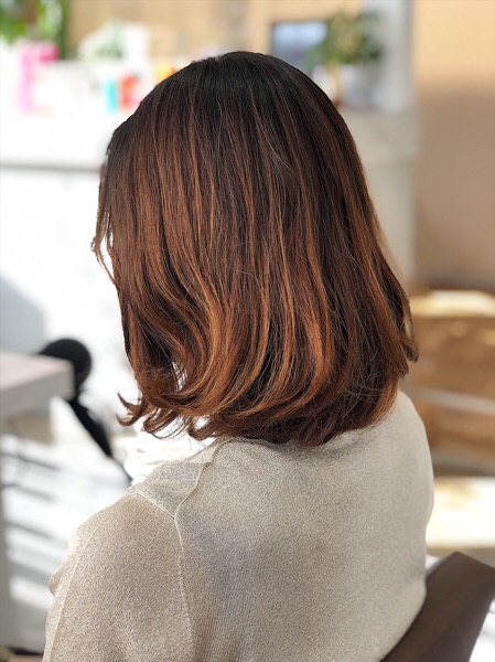 生まれつき明るくなりやすいのがお悩みで、このように勝手に明るくなってしまうタイプの髪質。