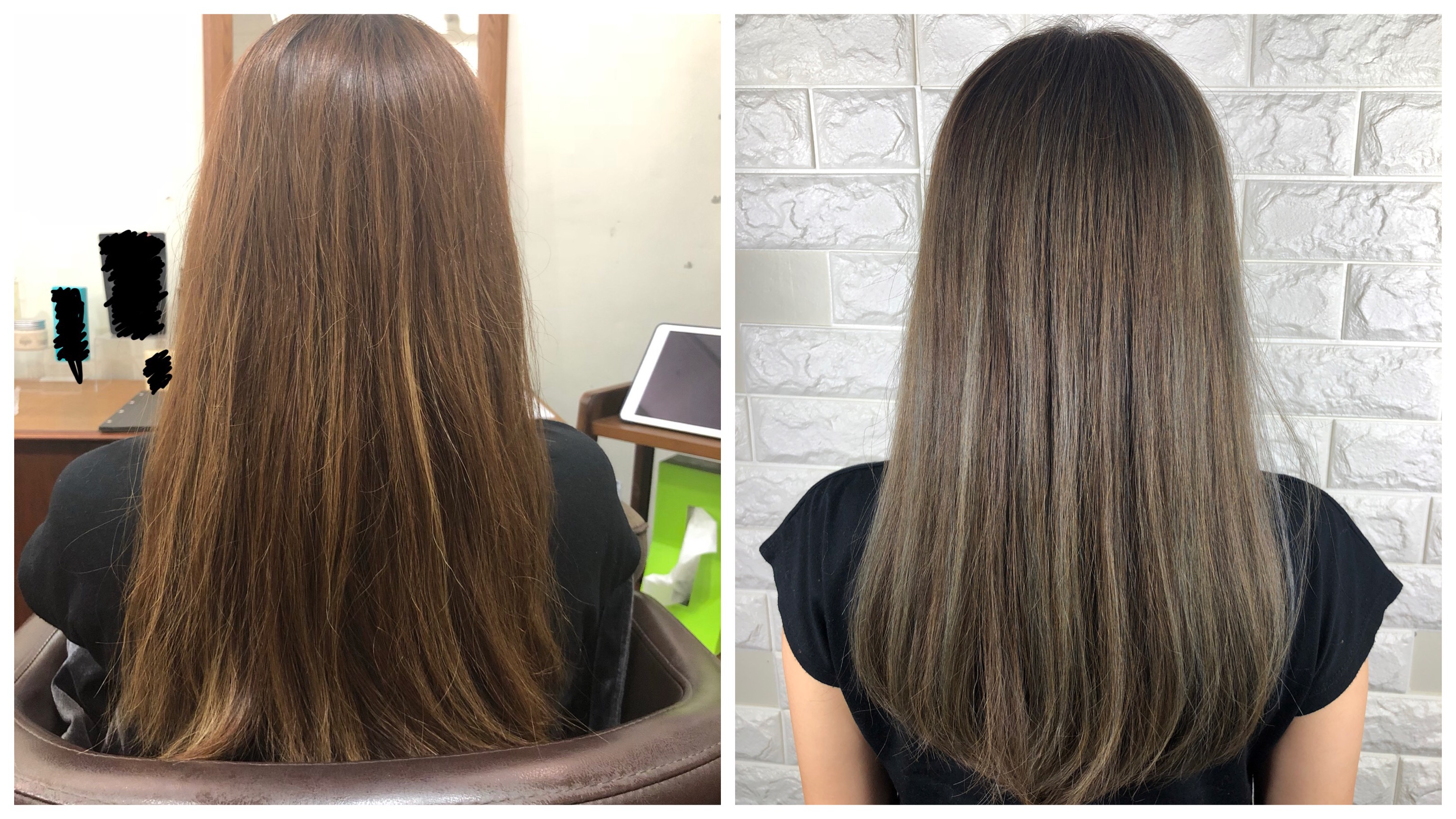 ハイライトを入れて、上から14レベルのアッシュとその他色々混ぜて染めていきます!