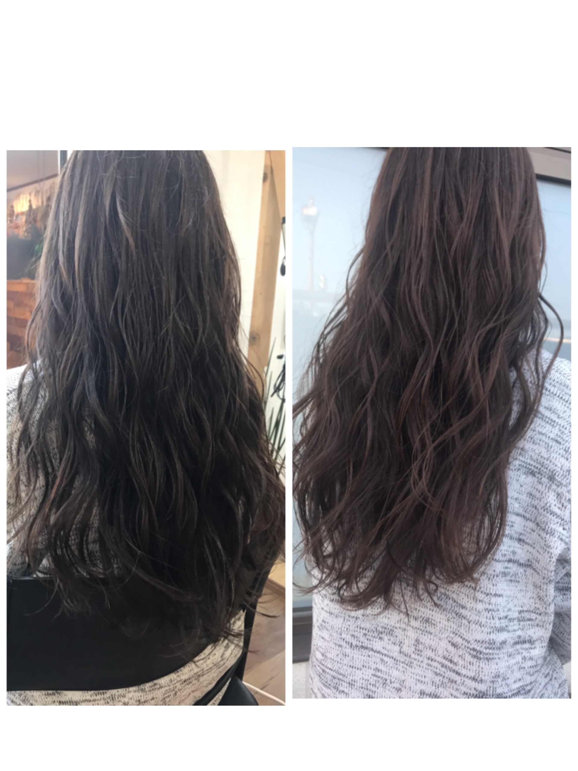 そんなカラーで染めたお客様を【外】と【室内】で撮ってみました。