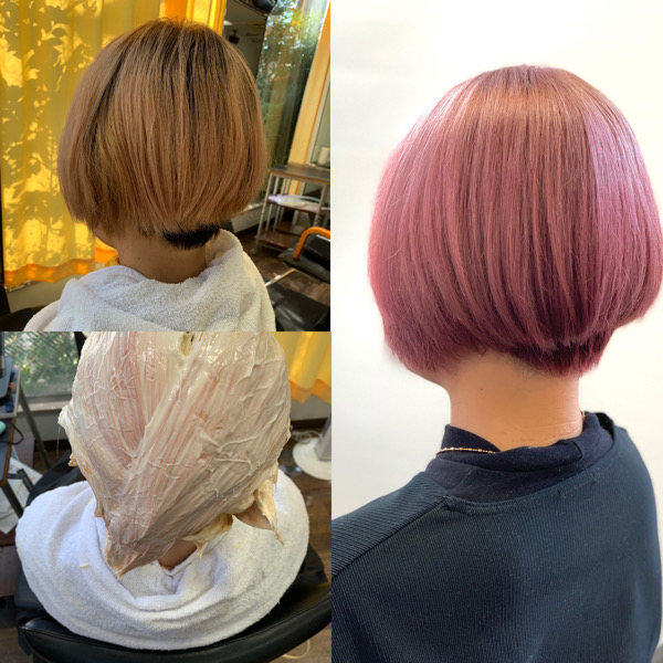 今回は根元と中間毛先で薄さを変えたカラー剤を塗っていきます