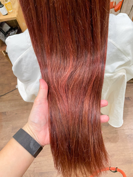 勿論ブリーチをするともう少し色は入りますがしなくてもこのぐらいは赤くなります。