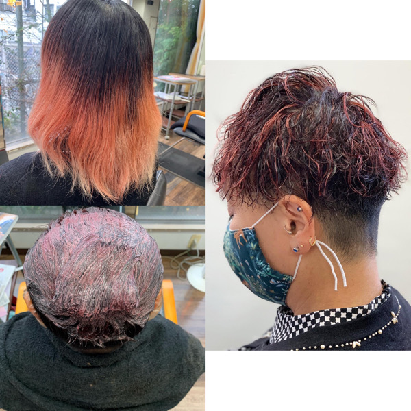 塩基を使えば更にビビットな色味にもなりますが次回のカラーチェンジの時に苦戦する為アルカリカラーをチョイス