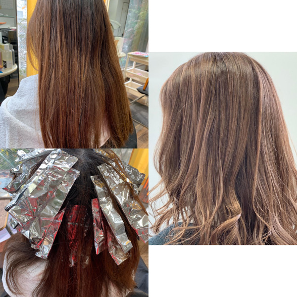 ブリーチハイライトをして白髪っぽい筋をたくさん作ると気になりづらくなってくれるのです