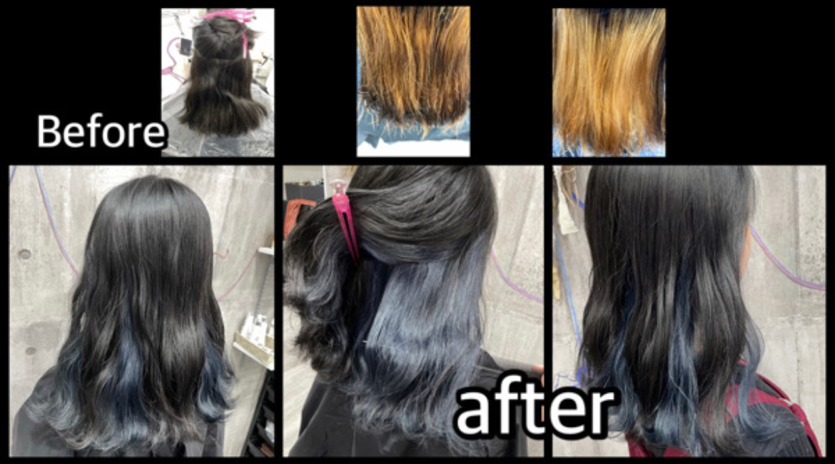 インナーカラーのブリーチと濃厚ブルーラベンダー