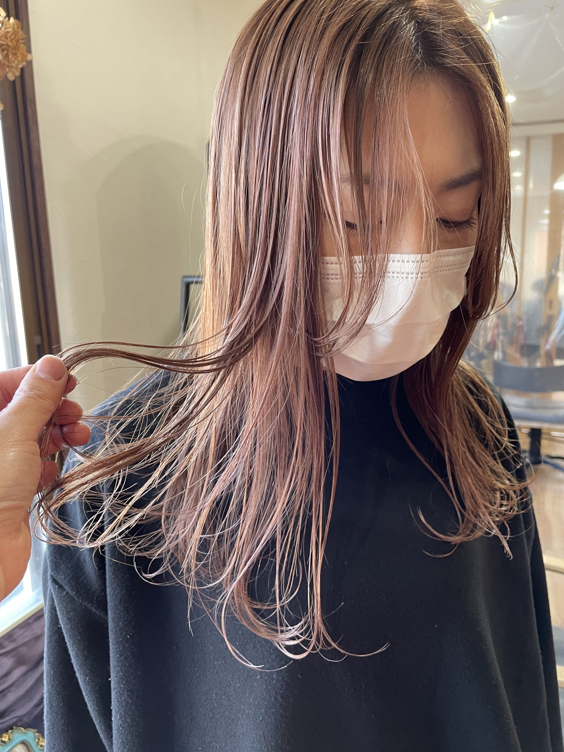 かなり多めにバイオレットを入れたカラーになります、 黄色味が消せるので黄色っぽくなってしまう方はオススメです!