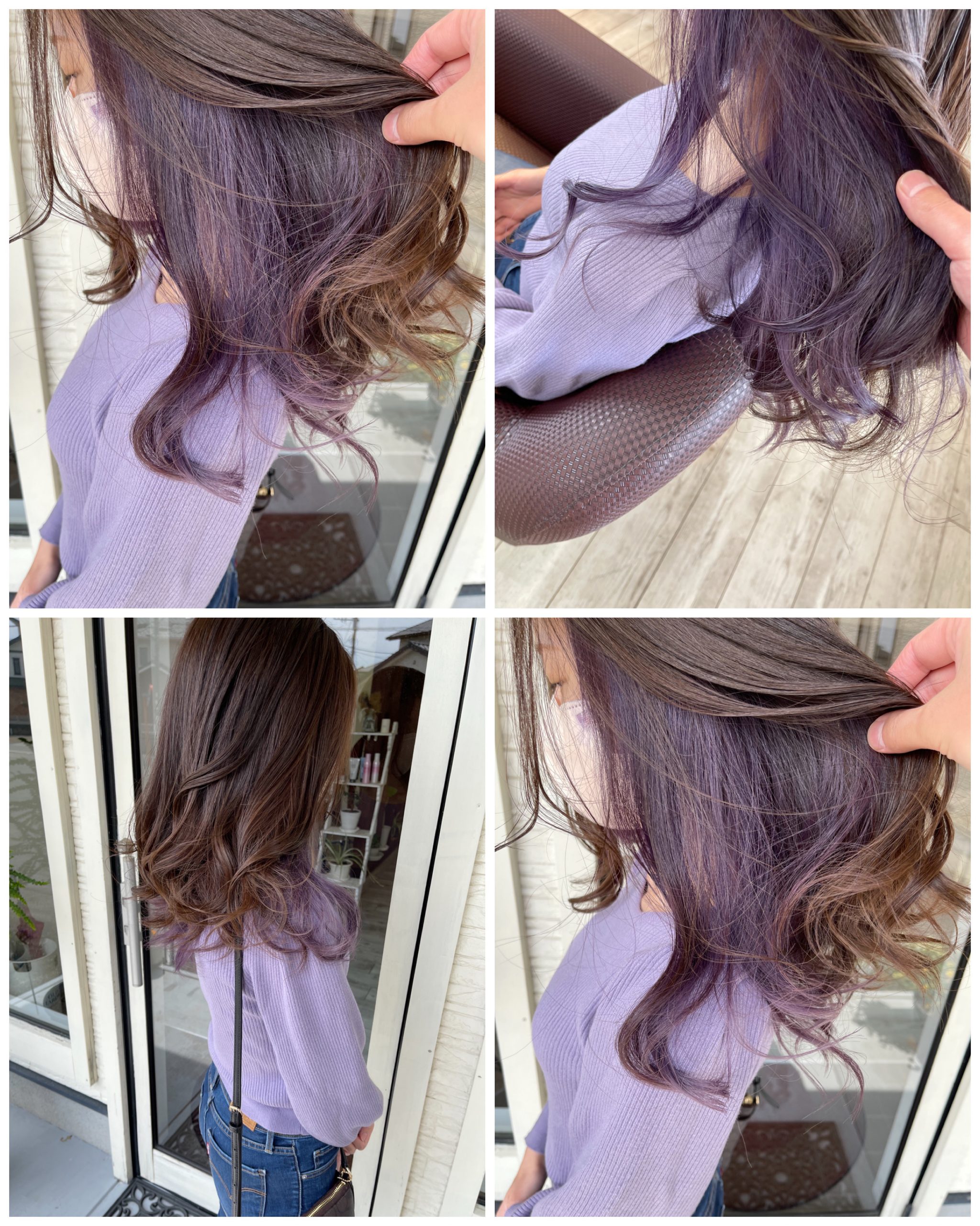 今回はパープルのインナーカラーに落ち着いた大人のアッシュカラーのスタイルをご紹介いたします