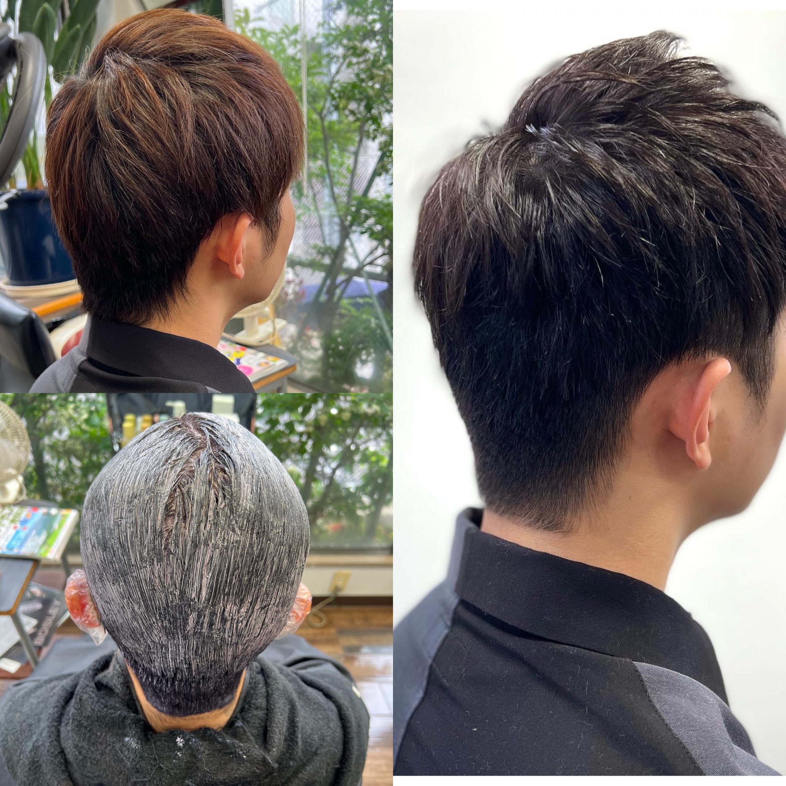 赤味を抑えつつ透明感をプラスする事で重く見えないヘアカラーになります