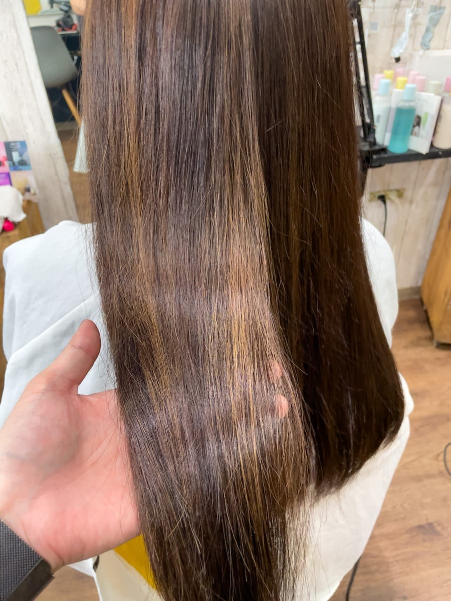 全体のカラーをスロウマージで染めて馴染ませてあげると