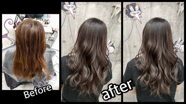 ハイライトの履歴があり土台に明るさがあります。 ここにオリジナル配合でオンカラーしました。