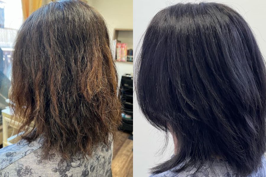 暗く染めても白髪染めを使っていないのでカラーチェンジも問題なく行う事が可能