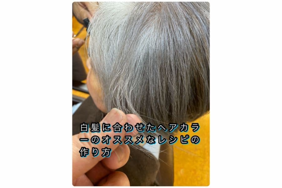ハイライトを入れて白髪をぼかしたり、白髪染めを少な目にしたヘアカラーレシピ
