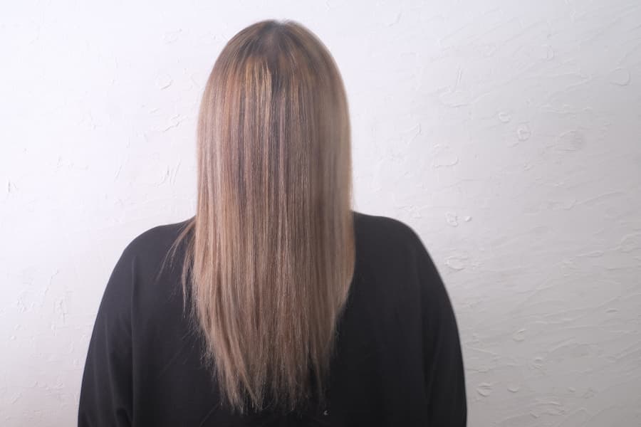 根本の白髪が気になると言うことなので、伸びている表面にバレイヤージュを入れていきます。