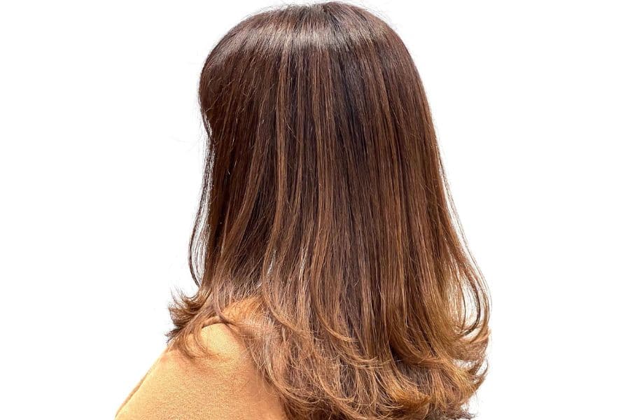 根元は白髪染めで中間〜毛先はオシャレ染めと分ける事で明るい白髪染めが完成します