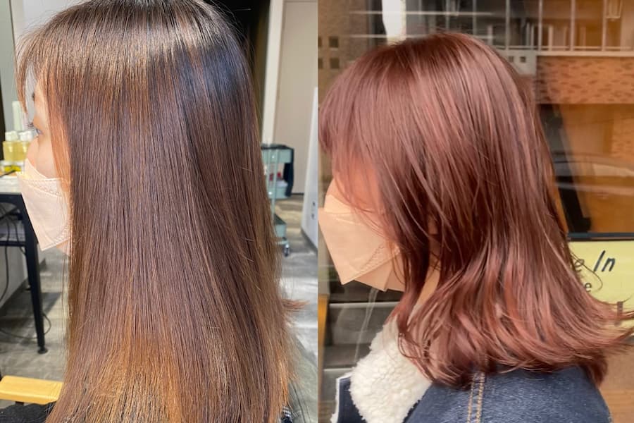 今回はイメチェンカラー。いつもナチュラルなブラウン系が多いお客様。初のピンク系に染めさせて頂きます。