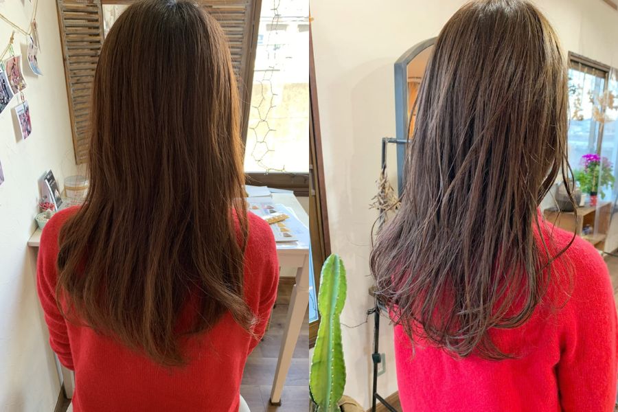 全体をブリーチせずPOINTで明るくしていくことでワンカラーより透明感が出せます。